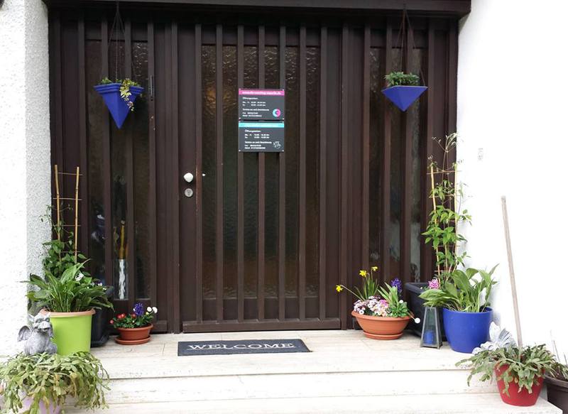 Es handelt sich um eine Doppelhaushälfte, unsere Räumlichkeiten sind im hinteren Eingang.